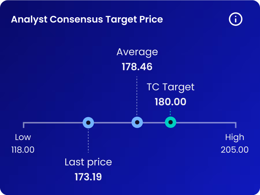 The Analyst Consensus widgets aggregate the analyses and predictions from leading market analysts and trusted global sources into clear, intuitive visualizations. They help investors anticipate a stock’s price movements while gaining a clearer view of expert sentiment.