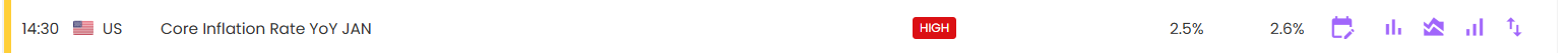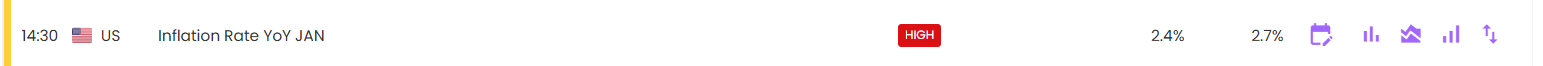 According to the forecast of Trading Central's "Economic Insight", the headline U.S. inflation rate is expected to slow to 2.4% year on year in January from 2.7% in December.