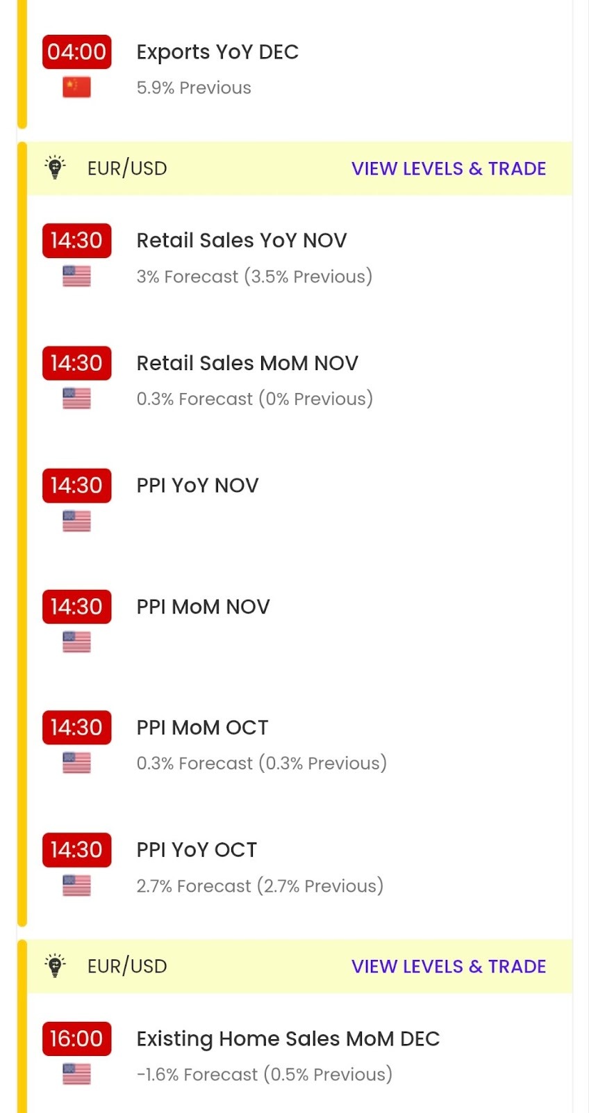 According to the forecast of Trading Central's "Economic Insight", the U.S. Inflation Rate is expected to tick down to 2.6% year on year in December from 2.7% in November.