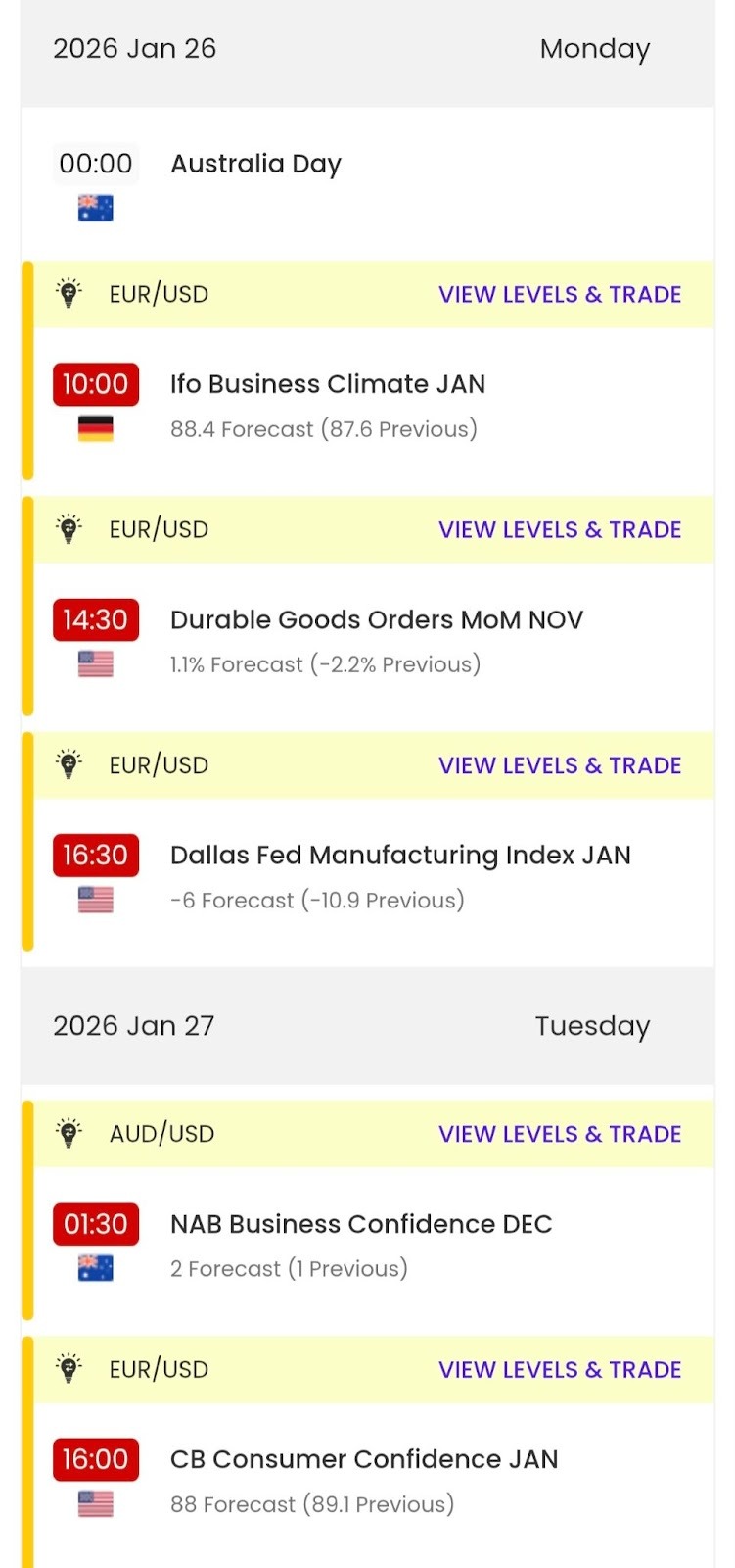 Using Trading Central's "Economic Insight" investors can check out up-coming major economic data.