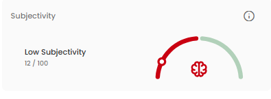 Meanwhile, the subjectivity widget is considered as "Very Low". The subjectivity index measures how rational the crowd's opinion of an entity is, which can be helpful in identifying market bubbles. Its score ranges from 0 (very rational) to 100 (very irrational).