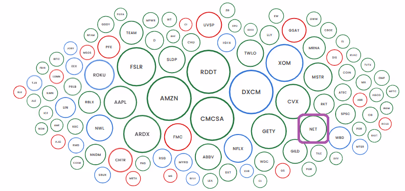 Using Trading Central's Market Buzz for understanding stocks' variation, Cloudflare (NET) has been identified as an interesting choice.
