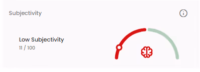 Meanwhile, the subjectivity widget is considered as "Very Low". The subjectivity index measures how rational the crowd's opinion of an entity is,which can be helpful in identifying market bubbles. Its score ranges from 0 (very rational) to 100 (very irrational).